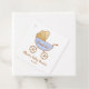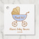 Ein niedliches Dankeschön an die Anhängermarke für die Gäste, die ihren kleinen Jungen Duschen mit einem pastellblauen und goldenen Retro-Kinderwagen und dem Namen der künftigen Mutter in einem stilvollen Drehbuch anbieten. Sie können den Text auf dem Babywagen mit "Danke", dem Namen des Babys oder "It's a Boy!" personalisieren oder leer verlassen und das Duschdatum unten.