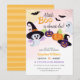 Baby Dusche Einladung für Little Boo Halloween-Party mit niedlichen Kürbis, Geist und Fledermäuse.