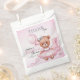 Gönnen Sie sich eine Bags Baby Dusche mit einer bezaubernden Aquarell-Abbildung eines Teddybären in einem niedlich rosa Kleid.