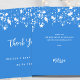Eine Dankeschön-Karte für eine Babydusche. Eine hellblaue Hintergrundfarbe. Mit weißen Sternen dekoriert. Zurück: Personalisieren Sie Ihre Dankeschön Notiz und Name. 1 Blatt = 1 Dank Karte gedruckt Rand bis Rand.