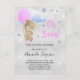 Baby Dusche Mädchen rosa Teddybär silber Einladungspostkarte