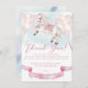 Horse-themed Dankeschön-Karte mit der Illustration eines hübschen Baby Pony und Watercolor Märchencolor golden Sterne mit pastellfarbenen Ballons und rosa Band zum Ende der Feier!