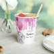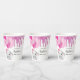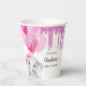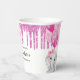 Für eine glamouröse und feminine Babydusche, die ein kleines Mädchen feiert. Ein stilvoller weißer Hintergrund. Auf der Vorderseite und auf der Rückseite: Personalisieren und fügen Sie einen Namen und ein Datum. Dekoriert mit Imitaten Glitzer Tropfen, Farbe Tropfen Aussehen, rosa Ballons und ein Baby Elefant.