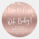 Ein eleganter und luxuriöser Aufkleber für Ihre Babydusche Dankeschön-Karten und Gefälligkeitstaschen, die Rose Gold Imitat Glitzer tropfen von oben und "Oh Baby!" in einem stilvollen weißen Drehbuch unter einem Rose Gold Hintergrund. Sie können einfach den Namen der Mutter-zu-sein und eine Danksagung zu personalisieren.