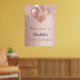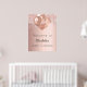 Ein willkommenes Poster für eine glamouröse Baby-Dusche, geschlechtsneutral. Eine Rose goldener Hintergrund mit Tropfen, Farbe tropfende Aussehen, Ballons. Personalisieren und einen Namen hinzufügen. Zurück: kein Design