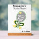 Name der Mama und Kinderdusche Datum in schwarzer Schrift. Sweet Baby ist in weißem Text über elegante silberne Babyrinde geschrieben, mit einem gelben Stern und gelb und grün beattem Look Bogen. Hintergrund löschen Elegant 8" x 10" Tabelle Anzeige Signage. Original Artwork Design von TamiraZDesign.