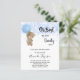 Für eine Babydusche, die einen kleinen Jungen feiert. Ein weißer Hintergrund. Ein Teddybär, der einen blauen Ballon hält. Personalisieren und fügen Sie den Namen der Mutter zu sein und Party-Details. Der Name und der Text: Oh Junge! und Bearly sind mit einem handgeschriebenen Stilskript geschrieben.