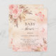 Für eine moderne Babydusche im bohischen Stil. Eine Rose Gold, rot rosa rustikale Imitate metallisch aussehen Hintergrund. Die Einrichtung besteht aus Rose-Gold und rosa Blumen, Rose, Pampas-Gras und Schmetterlingen. Personalisieren und fügen Sie einen Namen und Party-Details hinzu. Zurück: Platz für mehr Text. (oder löschen)