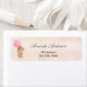Ein niedliches Teddybär-Mädchen, das einen rosa Ballon auf einem rustikalen, rot-schwarzen Rosa hält, Rose goldener Hintergrund. Personalisieren Sie Ihren Namen und Ihre Adresse und fügen Sie diese hinzu. Ideal für Babydusche und Dankeschön Karten.