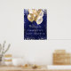 Ein Begrüßungspposter für eine glamouröse Babydusche, die einen kleinen Jungen feiert. Ein marineblauer Hintergrund mit eleganten Imitaten, vergoldeten und silbernen Glitzer Glitzern und goldenen Ballons. Die blaue Farbe ist ungleichmäßig. Personalisieren und einen Namen hinzufügen. Weiße Buchstaben. Zurück: kein Design