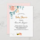 Für eine Babydusche, Feiern eines kleinen Mädchens. Ein schick weißer Hintergrund. Die Einrichtung besteht aus einer goldfarbenen Rose in Rosa und Rose, Blume, Blumen und grünen Eukalyptuspflanzen, Blätter, einem goldenen Gewürzkräuter und einer niedlichen, glücklichen Biene mit einem Umschlag. Personalisieren und fügen Sie einen Namen und Party-Details hinzu. Schwarze und goldene Buchstaben. Der Text: Baby Shower und der Name der Mutter zu sein geschrieben werden mit einem modernen handgeschriebenen Stil Skript. Zurück: Rose goldene Hintergrundfarbe, Postkartendesign. Tipp: Wenn Sie es nicht so gewollt haben, dass es wie eine Postkarte aussieht, klicken Sie auf Anpassen, gehen Sie auf die Rückseite und entfernen Sie den Trenner und posten Sie die Briefmarke.