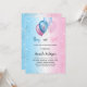 Für eine Babydusche sowohl für einen kleinen Jungen als auch für ein Baby. Ein blauer, weißer und rosa Farbverlauf. Glitzer und Blau, rosa und weiße Ballons und Staub aus Glitzer. Personalisieren Sie den Namen der Mama-to-be- und Party-Details und fügen Sie diese hinzu. Der Name und der Text: Junge oder Mädchen werden mit einem handgeschriebenen Stift geschrieben