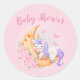 Baby Einhorn über den Mond mit Blume Klassische Rundaufkleber- und Party-Artikel > Geschenkartikel > Aufkleber & Etiketten