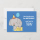 Dies ist eine niedliche Party Einladung zum 1. Geburtstag mit einem grauen Elefanten mit einem gelben Schild, auf dem Happy Birthday steht! Der Elefant hält einen blauen Ballon und trägt einen gelben Hut aus Party. Ihr eigener Text ist weiß an der Seite, und alles ist auf einem hellblauen Hintergrund platziert. Auf der Rückseite der Einladung befindet sich ein weiterer Elefant, der Geburtstagsgeschenke auf seinem Kofferraum hält. Es gibt genug Platz für Ihre Party-Informationen. *Dank Real Deal Clipart für den Clipart, der dieses Design erstellt hat.