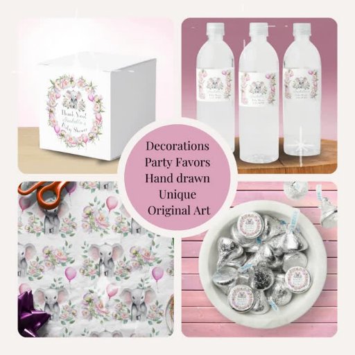 Baby Elephant Peonys, Balloons Karten & Geschenke Poster