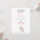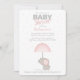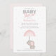 Baby Elephant Pink Baby Shower feiert die Mutter mit diesem süßen Baby Dusche Thema. Mit einem niedlichen Elefanten, der einen Schirm hält. Das Design ist perfekt für eine Babydusche. Karo der koordinierenden Schreibwaren und Geschenke.