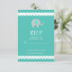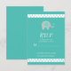 Diese Baby Elephant Polka Dots Baby Shower RSVP Karte ist perfekt für eine Dschungelmotive, geschlechtsneutrale Babydusche oder Sprinkle. Das Design umfasst einen grauen und aquamarinen Babyelefanten mit aquamarinen Polka-Dot-Rändern auf aquamarinem Hintergrund und eine trendige Kalligraphie.