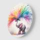Dieser kleine Elefant hat gerade die Freuden der Farbe entdeckt. Er sind zum Kotzen Farbe in seinem Kofferraum und bläst Fantasie in die Welt um ihn herum. Schauen Sie sich nur die Zeit an! Wir sollten dieses Farbchaos besser aufräumen.