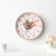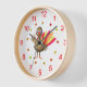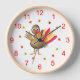 Eine niedliche farbenfrohe Uhr für Kinder mit meinem digitalen Kunstwerk eines kleinen Truthahns, umgeben von Herbstblättern.