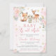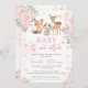 Niedliche Waldtiere in Rosa und rosa goldene Blume Winter Wunderland Mädchen Dusche Einladung.