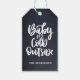 Diese coolen und festlichen Weihnachtsgeschenke-Tags sind mit "baby it's kalt inside outine" in weißer Hand mit Schriftzeichen auf schwarzem Chalkboard-Hintergrund versehen. Umkehren zu einem Muster von weißen Schneeflocken auf einem staubigen blauen Hintergrund. Alle verfügbaren Farben
