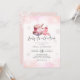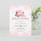 Niedliches pinkfarbenes Girl Duschbad Wintereinladung mit Schneeflocken, heißem Kakao, Babyflasche und Schnuller.
