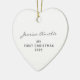 Feiern Sie das erste Weihnachtsfest Ihres Babys mit diesem herzförmigen modernen minimalistischen Typografie-Ornament in klassischem Weiß, personalisiert mit dem Namen und dem Foto Ihres Kindes. Dieses maßgeschneiderte Ornament eignet sich perfekt zum Gedenken an diesen besonderen Meilenstein und macht einen durchdachten Sake und eine tolle Geschenkidee für neue Eltern. Ideal für diejenigen, die nach den ersten Weihnachtsschmuck eines personalisierten Babys, individuellen Foto-Feiertagssakes oder minimalistischer Feriendekoration suchen, fügt dieses zeitlose Stück Ihren Feierlichkeiten eine besondere Touch hinzu.