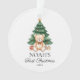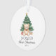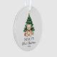 Erstellen Sie Ihr eigenes, erstes Weihnachtsschmuck mit einem personalisierten Namen neben der modernen Aquarellbilder von Teddybär und Weihnachtsbaum. Fügen Sie Ihr eigenes Foto auf die Rückseite des Ornaments.