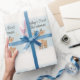 Wrap newborn gifts with this baby first christmas wrapping paper.