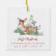 Celebrate the magic of your little one's very first holiday season with this enchanting Baby First Christmas Deer Woodland Photo Ceramic Ornament! This beautiful ceramic ornament captures pure innocence, featuring an adorable baby deer vignette nestled among charming mushrooms and delicate foliage on the front. Your baby's name and birth stats (date, weight, length, time) are elegantly displayed, with "First Christmas" beautifully highlighted in festive calligraphy, creating a truly personalized keepsake.