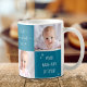 "First Hanukkah." Playful grid of 2 personalized fotos of your choice and white handwritten script typography and snowflakes overlaying a teal blue background, helps the proud grandeltern usher in Hanukkah and New Year. Feel the warmth and joy of the holiday season whenever they use this stylish and modern personalized foto keepsake holiday mug. Perfekt gift for the newly proud Nana & Papa! Just replace the 2 sample fotos with ones of your own, type in the baby name of your choice and year, and you can easily persalize this Hanukkah foto keepsake holiday mug. Please Message with any anfragen or requests.