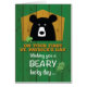 Wünschen Sie einem Neugeborenen oder einem Baby einen glücklichen St. Patrick's Day mit diesem Bär auf einem holzaussehenden Korntür-Hintergrund. Grüne Kleeblätter fügen eine "beary" glückliche Touch hinzu!