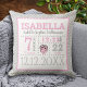 Niedliche Pink und Grau und Weiß Polka dots Baby Mädchen Geburtskissen mit süß rosa Eule. Editieren Sie, um alle Ihre wertvollen Freudengeburtsdetails einzufügen.