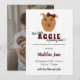 Lass der Welt von deinem neuen kleinen Mädchen! Diese niedliche Ankündigung wird in den Farben Maron und Grau mit einem hübschen, kleinen Mädchen Collie Hund - komplett mit Bogen - ganz oben gemacht. Personalisieren Sie die Geburtsdetails Ihres Babys und Ihre Namen und fügen Sie ein vertikales Foto auf der Rückseite hinzu.