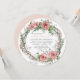 Rund Format für eine sehr einzigartige Babydusche. BOHO-Stilgemütlichkeit für Mädchen mit einer süßen, gedämpften Farbpalette aus Rosa, Kakaobraun, Grau und Grün. Mit einer Rose Blume Krone mit Babyatmen, Eukalyptus-Blätter und pussy Weide. Auf der Rückseite ist rot pink mit einem Pfeil-Blume-Design und Ihre uAwg- und Registrierungsinformationen. Art Copyright Audrey Jeanne Roberts, alle Rechte vorbehalten.