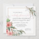 Mit einer trendigen, gedämpften, ätherischen Farbpalette aus Rosa, Weich, Braun und Grau, wird dieses BOHO-Stilthema für kleine Mädchen zu jeder Jahreszeit funktionieren. Mit handgemalten Aquarellblüten und Blättern in lockerer, moderner Art, mit Rose, Babyatmen, Eukalyptus-Blätter und Muschelweide. Der Hintergrund ist weiß mit einem weichen, braunen, dünnen Rand. Auf der Rückseite ist ein sanftes Muster aus warmem Taubengrau mit einem Repeat-Pfeil und Dreieck-Design. Art Copyright Audrey Jeanne Roberts, alle Rechte vorbehalten.