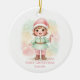 A playful pink baby elf brings joyful holiday cheer to her First Christmas. Soft watercolor charm makes this a perfect personalized keepsake.