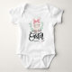 Das erste Osteroutfit des Babys mit niedlichem Kaninchen mit Bogen und grünen Blätter. Fügen Sie den Namen und das Jahr personalisiert hinzu.