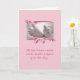 Eine wertvolle Pink-Baby-Gratulations-Karte mit einem Foto von neugeborenen Babyfüßen gerahmt mit filigranen Blätter und einem niedlichen rosa Band in einem Bogen. Front liest: Die Verbindung zwischen Mutter und Tochter wird durch die kleinen Dinge definiert.