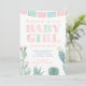 Niedlich pastellrosa und grün Baby Dusche Einladung Design mit Aquarellkakteen / Kakteen pinkfarbene Birne für eine lustige mexikanische Babydusche oder Baby Sprinkle.