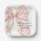 Elegant pink bow paper plates perfect for baby showers or bridal showers.