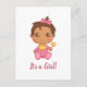 Niedlicher Cartoon in einem rosa Springanzug gekleidet mit einem gelben Bib, das einen Säugling hält.