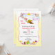 This adorable baby shower invitation features a cute little bee surrounded by soft flowers and playful toys, creating a sweet and cheerful design for celebrating a baby girl. The gentle floral accents and whimsical details make it perfect for a spring or garden-themed baby shower. Personalize the text with your event details to create a charming invitation for friends and family.