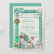 Der aquamarine Rahmen mit Spielzeug für einen kleinen Jungen oder ein Mädchen mit einem gefleckten cremefarbenen Teakholz-Hintergrund ist ein von weißen Gänseblümchen und einem Hund umgebenes Baby