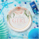 Add a touch of soft, romantic elegance to your celebration with this Sweet Baby Girl floral round paper plate. Featuring hand painted blush pink watercolor roses, delicate white berries, and lush eucalyptus leaves, this girly flower garden baby shower design brings a beautiful botanical charm to your party table. The warm golden yellow border peeks through the florals, giving the plate a refined, timeless finish that pairs perfectly with spring and summer themes.