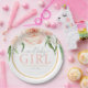 Complete your coordinated look by pairing these plates with the matching baby shower invitations, welcome sign, diaper raffle cards, party cups, favor tags, napkins, and more within the full Sweet Baby Girl floral event suite.