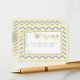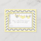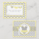 Grauer und weißer Zickzack Druck mit Akzenten aus Maisseide mit Windeln auf der Wäscheleine und einem 3D-Look Polka-Dot-Bogen-Diaper Gewinnspiel für eine Babydusche.