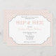Sie ist endlich da und niedlich, wie es sein kann, bitte nehmen Sie sich mit uns für einen Schluck und sehen! Niedliche Schluck und sehen Einladungen, ein kleines Mädchen willkommen zu heißen, mit einem rosa Zickzack Hintergrund.