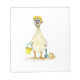Niedliche Babygans mit Sandeimer und Hut auf Gebäude und Burg