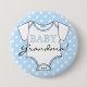 Dieser entzückende hintere Knopf des Abzeichens oder des Buttons erklärt allen Ihren Babyduschengästen, ", das ich die Großmutter bin". Blauer und weißer Polkapunkthintergrund mit einer blaues Baby onsie Pullover-T - Shirtausstattung thingy und das Wort "BABY". Personifizieren Sie dieses Abzeichen für alle Familienverwandten! Vervollkommnen Sie für die Schwester, Tante, groß - Großmutter, Gotmutter oder MAMA! Machen Sie ein für jeder! Dieses Bild ist in anderen Farben verfügbar! Besichtigen Sie bitte meinen Speicher "die Hungarican Prinzessin" bei www.zazzle.com/hungaricanprincess* und schauen Sie in meiner "oh Baby" Kategorienabteilung. Glückwünsche!